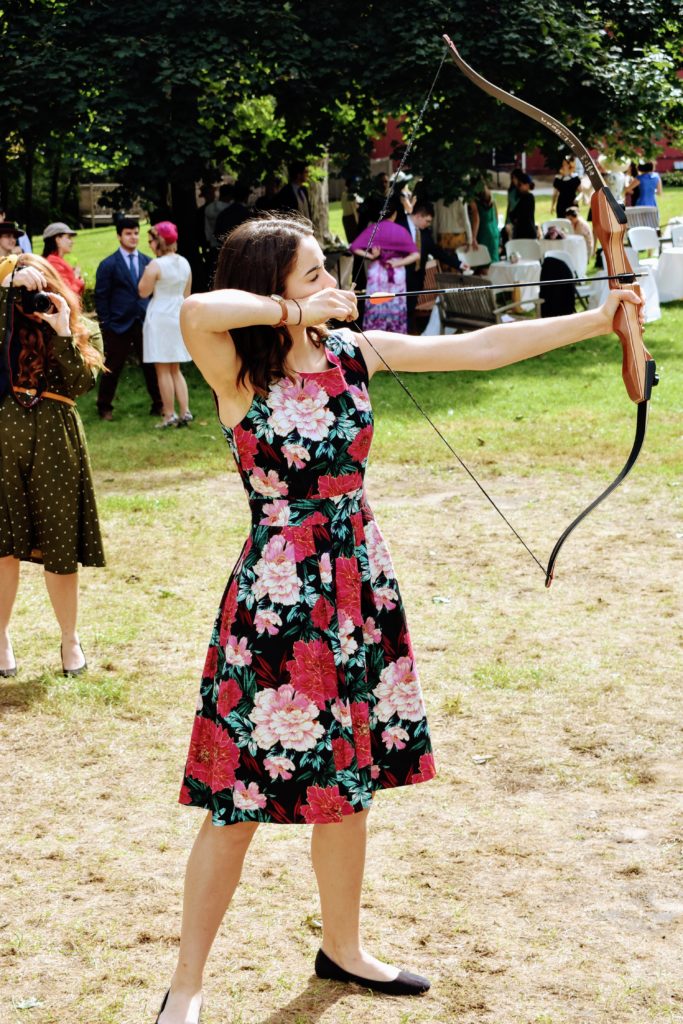 On Sunday, September 23, Thomas More College of Liberal Arts held its annual Tea and Shoot. This end-of-summer tradition allows the women to don elegant, floral dresses, sunhats, and fascinators, while the men clothe themselves in tweeds and Tattersalls. Replete with tea, Pimms, cucumber sandwiches, cookies, and lawn games, it has all the makings of an English garden party—especially with the attendance of Fr. Crean and the transfer students from Newman College, who hail from the United Kingdom and Ireland.