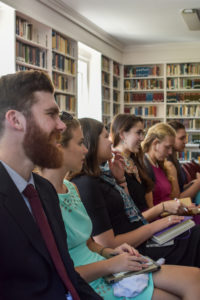 The entire college community assembled on Friday, September 13, to inaugurate the academic year. After a morning of reading, reflection, and conversation, faculty and students gathered in the library for Traditio, the first in a series of all-college discussions centered on a common work. This Traditio was dedicated to Robert Bolt’s play about St. Thomas More, A Man for All Seasons. A panel of three faculty members—Academic Dean Jay Thompson, Dr. John McCarthy, and Mr. Clark Mitchell—shared their impressions of the play, followed by questions and discussion. A common conclusion was that although Bolt’s portrayal of More is admirable and has deeply influenced the spiritual lives of many people, it does not do full justice to the college’s patron.