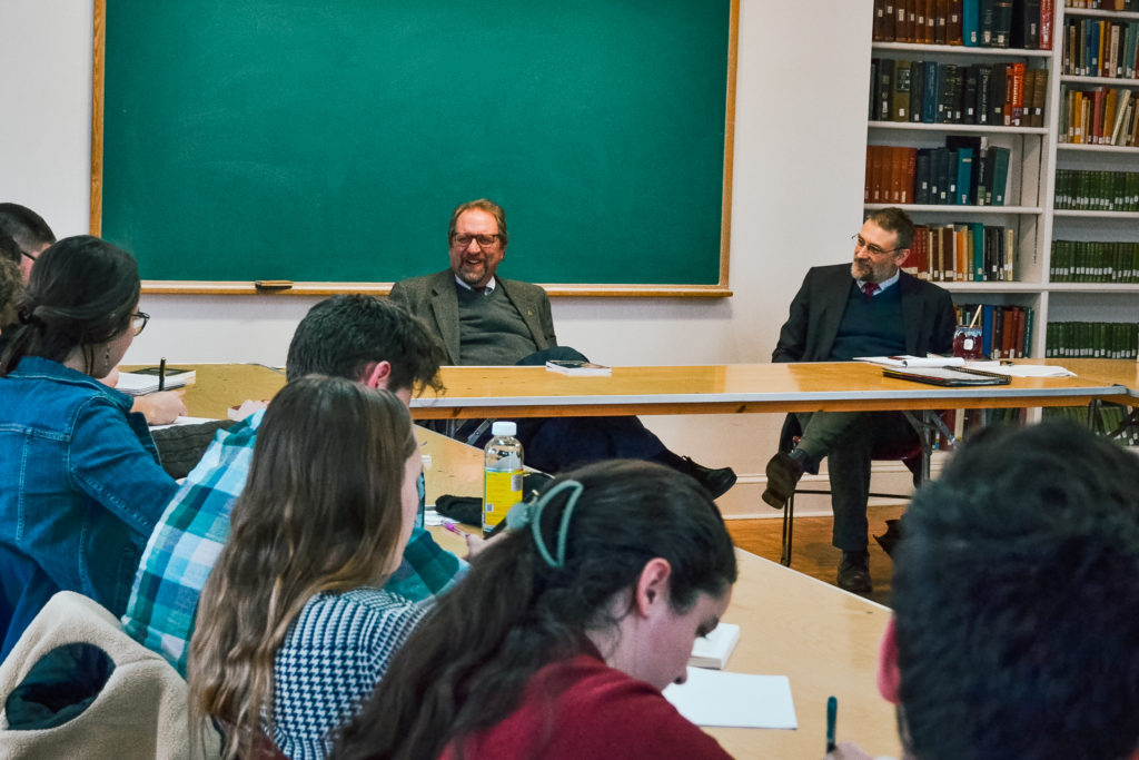 The Thomas More College community was thrilled to welcome Dale Ahlquist back to campus this semester. In addition to serving as president of the Society of G.K. Chesterton, Mr. Ahlquist is the co-founder of the Chesterton Academy, a classical high school in Hopkins, Minnesota, and the Chesterton Schools Network. Mr. Ahlquist gave the Commencement address at Thomas More College in 2017, where he received an honorary doctorate.