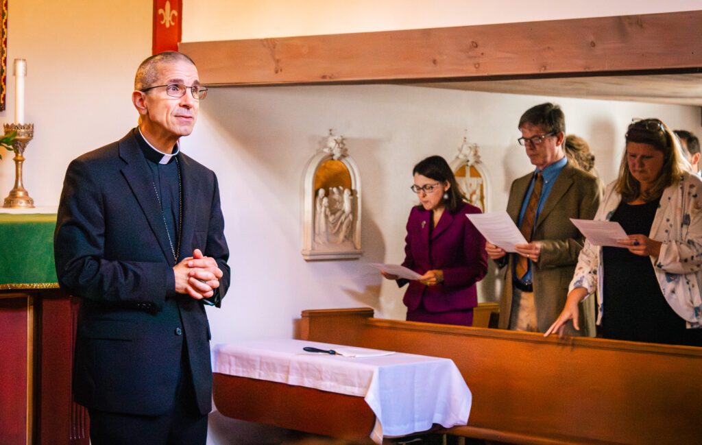 After Mass, members of the faculty and the Board of Trustees gathered into the College’s Chapel, where—on behalf of the Ordinary, the Most Reverend Peter Libasci of the Diocese of Manchester, New Hampshire—Bishop Ruggieri heard their Profession of Faith and Oath of Fidelity to the Magisterium. The College is grateful to His Excellency for his generosity in blessing our community with his presence on such an important day for the TMC community.